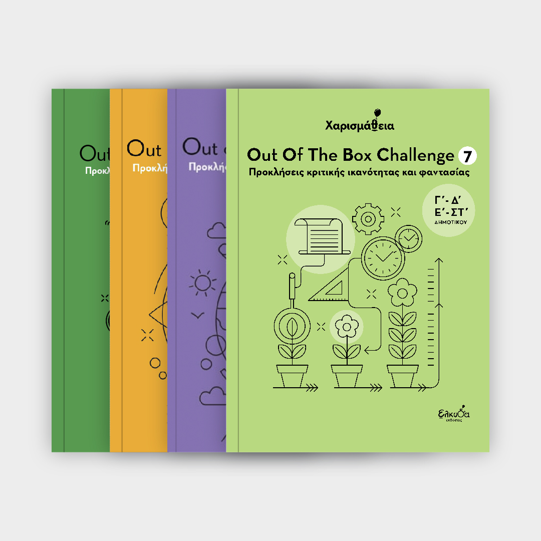 Επιστράτευσε την επιμονή, τη συγκέντρωση, την κρίση και τη φαντασία σου, και ξεκίνα αυτό το συναρπαστικό ταξίδι! Στο βιβλίο αυτό θα βρεις τα θέματα του Out of the Box Challenge, του πρώτου μαθητικού διαγωνισμού δημιουργικότητας και κριτικής ικανότητας για παιδιά Γ΄ και Δ΄ Δημοτικού και για παιδιά Ε΄ και ΣΤ΄ Δημοτικού, χωρισμένα ανά ηλικιακή κατηγορία.
